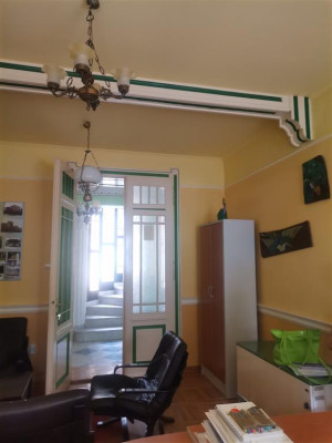Centar. Prodaje se stambeni deo od 150 m2, sastoji se od hodnika, kuhinje, dve odvojene prostorije, toaleta, na spratu tri odvojene prostorije, grv, grk, trofazna struja, grejanje na struju, parket, pločice, stolarija drvena, brodski pod, bez tavanskog dela.